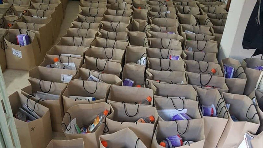I volontari della CVM distribuiscono la "dignity bag" (foto CVM)