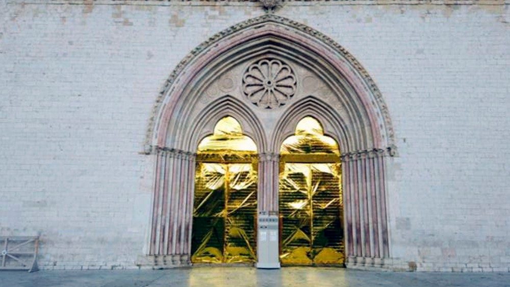 In occasione della Giornata mondiale del migrante, del 27 settembre, le porte della Basilica Superiore di San Francesco d'Assisi sono avvolte da oltre 20 metri di coperte termiche. Il progetto artistico di Giovanni De Gara nasce nel 2018: un viaggio partito dall’Abbazia di San Miniato al Monte a Firenze per tenere alta l'attenzione sul tema dell'accoglienza