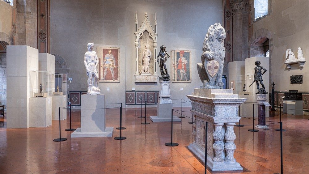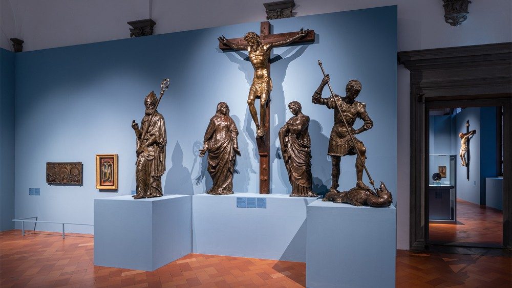 Donatello sovverte il rapporto tra il pubblico e l’opera d’arte: di fronte ad una sua scultura si è costretti a ripensare il movimento nello spazio. Allievo di Ghiberti e Brunelleschi, ha superato quest’ultimo: non ha costruito edifici come il maestro, ma li ha riplasmati attraverso l'introduzione in essi delle sue sculture o dei suoi rilievi”. Significativo il confronto in una stessa sala tra i celebri Crocifissi lignei realizzati dai due e provenienti dalla Basiliche di Santa Croce e di Santa Maria Novella.
