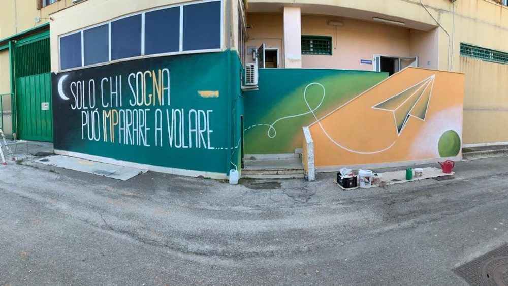 C’è un aeroplanino di carta che segna la propria rotta puntando verso l’alto, simbolo di quella libertà che se non è reale può diventarlo almeno con la fantasia. E poi c’è quel richiamo forte, diretto, ai sogni, nutrimento essenziale di ogni anima che voglia imparare a volare, o almeno reimparare a camminare con le proprie gambe. È la nuova opera di street art appena inaugurata sul muro esterno adiacente all’ingresso della casa di lavoro di Vasto, in provincia di Chieti, ideata dall’artista Lorenzo Faini, progettata assieme a due volontari dell’associazione Ricoclaun da anni presente nell’istituto di pena, e realizzata assieme a un gruppo di detenuti in semilibertà. “Il giorno dell’inaugurazione erano presenti molti volontari e un gruppo di internati appena ammessi alle licenze, che per noi sono il primo passo verso la libertà vigilata, quindi è stato un momento molto simbolico e toccante”, è la testimonianza di Maria Giuseppina Rossi, funzionario giuridico pedagogico della struttura.