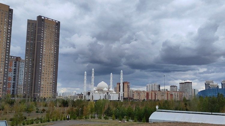 Le grandi arterie che innervano Nur-Sultan sono fiancheggiate da un’alternanza di bandiere del Kazakhstan, della Santa Sede e della Cina. Dall’aeroporto una sosta alla moschea blu, la più grande dell’Asia centrale, appena inaugurata. Gli ex-gulag, a una cinquantina di chilometri, sono vestigia del passato tragico toccato ai dissidenti politici imprigionati nell’ex Urss. Tutti parlano il russo, il kazako – spiegano – fatica a emergere come lingua nazionale. Divisa in due dal fiume Ishim, la città è nata e cresciuta sotto l’impulso dell’ex presidente Nazarbayev, di cui ancora porta il nome: resta aperto e diffuso il dibattito per ripristinare l’antica denominazione Astana.