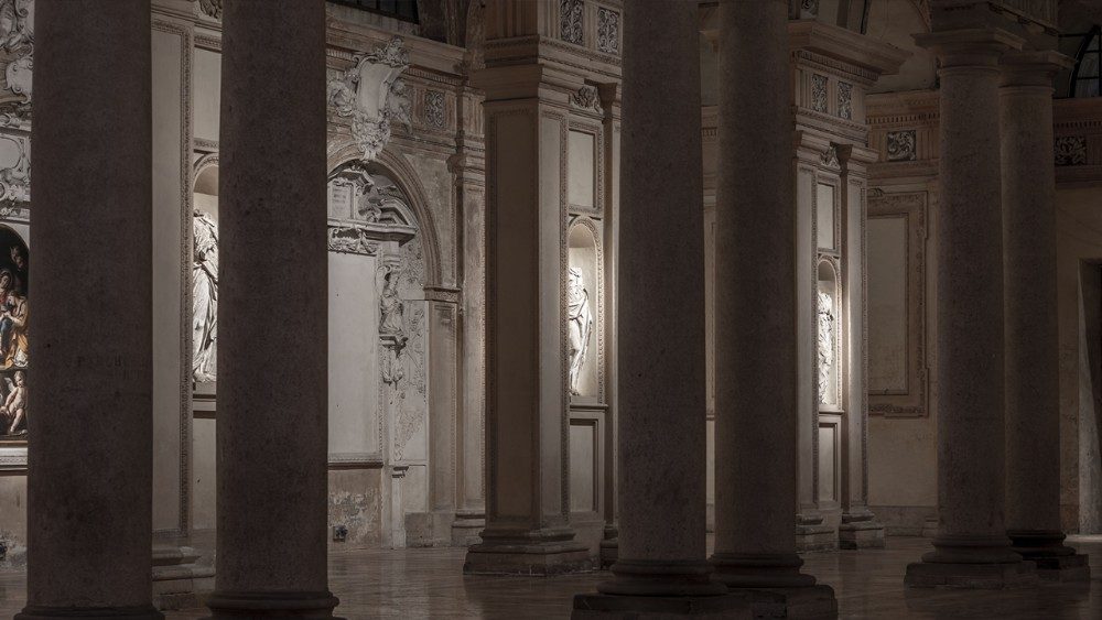 Le creazioni di Dolcini sono pensieri plastici che il designer raggruppa in famiglie - gli innesti, le sovrapposizioni, i tralci, i conversi - guidando l'osservatore tra la monumentalità degli spazi della galleria e portandolo all'essenza delle cose. La mostra è, in realtà, il secondo atto della riflessione di Dolcini sulla forma e sul tempo. Già nel dicembre 2024, infatti, vi era stata un'installazione sul sagrato della chiesa, per stabilire una prima relazione con la cittadinanza. In questo secondo momento il visitatore entra nel vivo della ricerca del progettista, nel suo rapporto con l'armonia. "In Dolcini - spiega Sammicheli - c'è un'attenzione alla matematica delle forme tipica della natura. Tutto ciò che ci appare così spontaneo è in verità normato da regole che sviluppano le armonie di quello che vediamo. Anche ciò che sembra organico ha alla base un rigore geometrico".