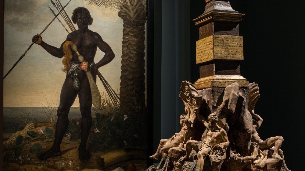 La scultura dell’ambasciatore Ne Vunda è il punto simbolico di partenza, ma al centro dell’esposizione trionfa Roma e la sua vocazione cosmopolita, accogliente, “l’unico luogo dove qualunque forestiero si sente a casa”, scrisse nel 1581 Michel de Montaigne nel suo Viaggio in Italia. Se questo aspetto è presente fin dalle epoche più antiche, basti pensare alla presenza delle comunità straniere che si stabilirono a Roma fin dal basso medioevo, nella mostra - curata da Francesca Cappelletti, direttrice generale della Galleria Borghese e professore ordinario di Storia dell’Arte all’Università di Ferrara, e da Francesco Freddolini, professore associato di Storia dell’arte presso ‘Sapienza’ Università di Roma - l’attenzione si è focalizzata nel secolo del barocco, all’epoca del Bernini, sotto il pontificato di Paolo V Borghese, tra il 1605 e il 1621. Il Pontefice, infatti, volse uno sguardo verso i luoghi più lontani, alla scoperta dei continenti sconosciuti, sia attraverso l’azione diplomatica che quella missionaria.