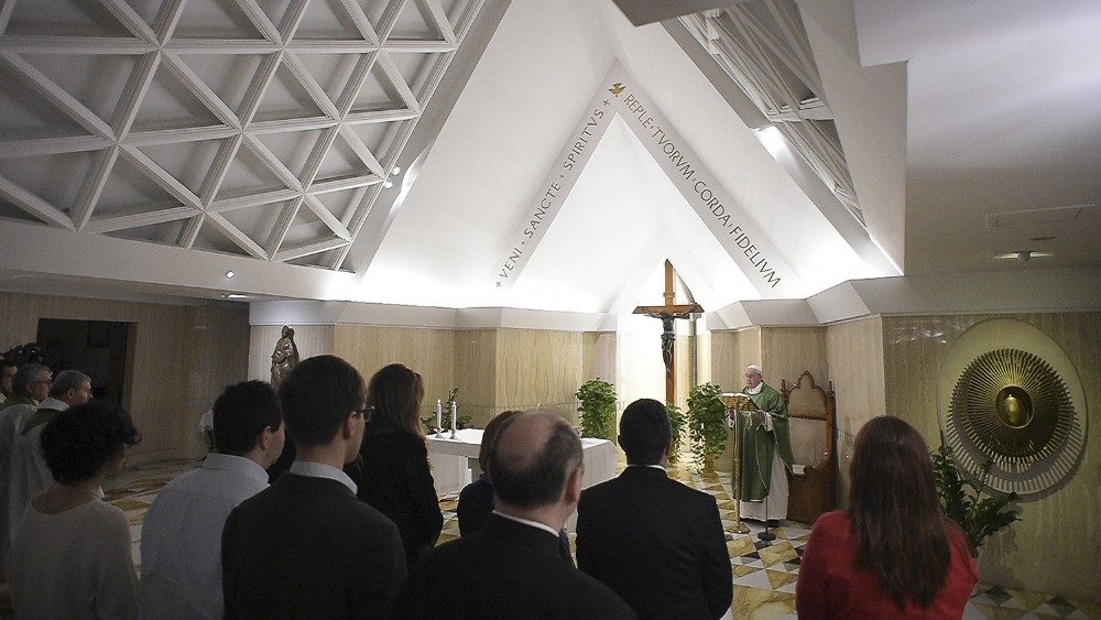 E per noi questa scivolata lenta nella vita è verso la mondanità, questo è il grave peccato: “Lo fanno tutti, ma sì, non c’è problema, sì, davvero non è l’ideale, ma...”. Queste parole che ci giustificano al prezzo di perdere la fedeltà all’unico Dio. Sono degli idoli moderni. Pensiamo a questo peccato della mondanità. Di perdere il genuino del Vangelo. Il genuino della Parola di Dio, di perdere l’amore di questo Dio che ha dato la vita per noi. Non si può stare bene con Dio e con il diavolo. Questo lo diciamo tutti noi quando parliamo di una persona che è un po’ così: “Questo sta bene con Dio e con il diavolo”. Ha perso la fedeltà.