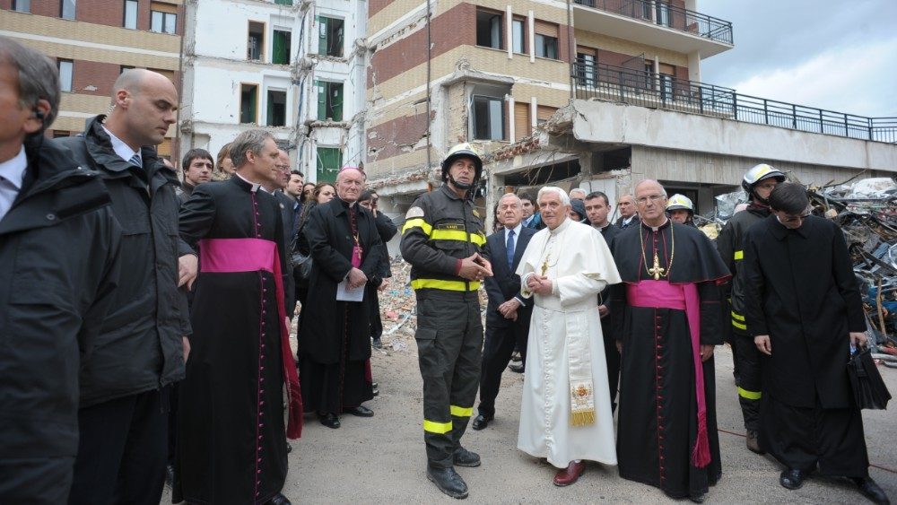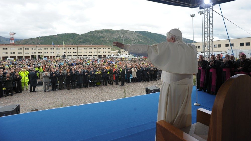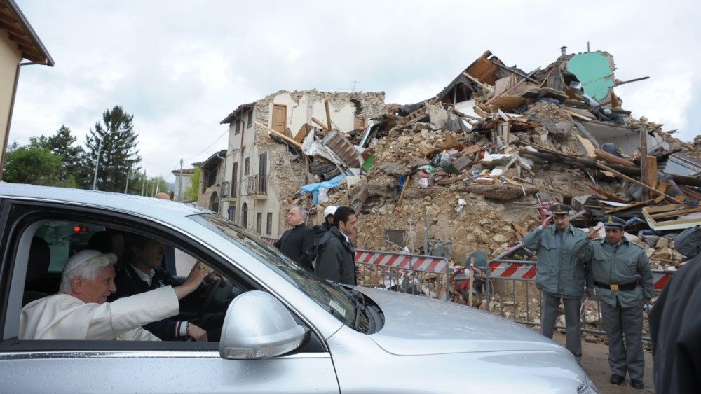 Nono anniversario del sisma in Abruzzo. Nel 2009 la visita di Benedetto XVI