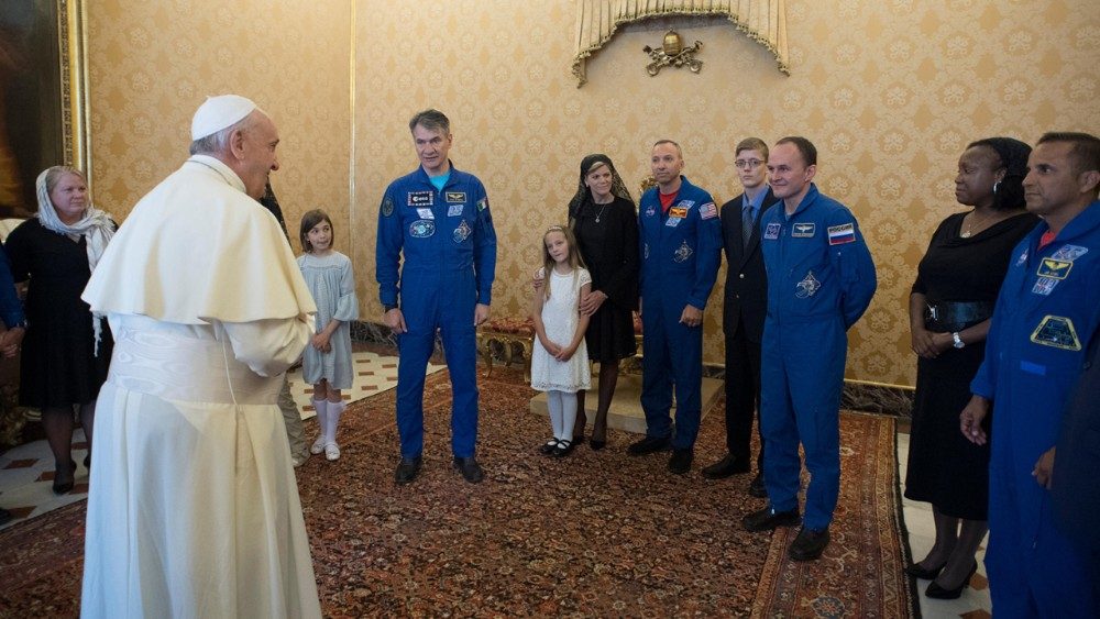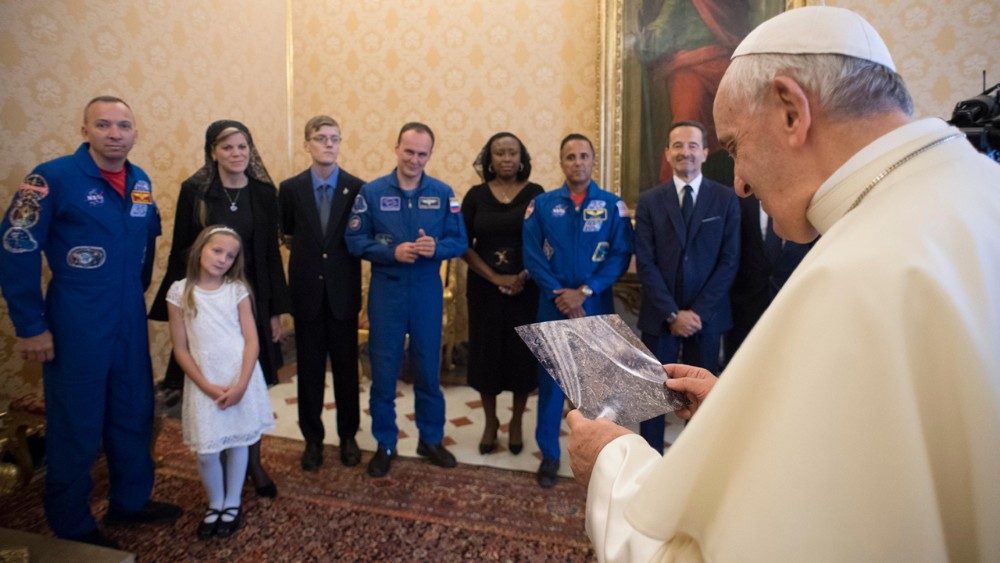 Lo scorso 26 ottobre il Pontefice si è collegato, via video, con l’equipaggio della Stazione spaziale internazionale. Durante il colloquio, durato 25 minuti, il Papa ha posto delle domande agli astronauti. Voi – ha detto– “siete un piccolo Palazzo di Vetro” in cui la “totalità è più grande della somma delle parti”. “Vi sentiamo – ha concluso Francesco in quell’occasione – come rappresentanti di tutta la famiglia umana nel grande progetto di ricerca che è la Stazione spaziale”.