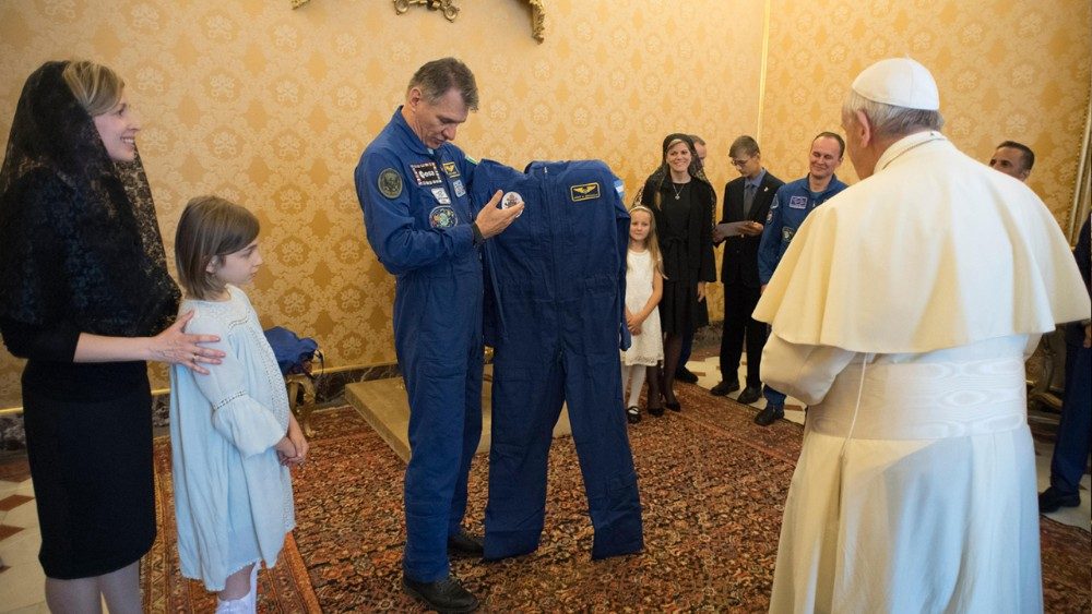 Papa Francesco ha ricevuto stamani, in Vaticano, gli astronauti della missione ISS-53, tra cui l’italiano Paolo Nespoli. Durante l'incontro si è parlato, tra l'altro, della fragilità della terra. Ai microfoni di Vatican News, Paolo Nespoli rivela che al Pontefice è stata donata una tuta da astronauta con una mantellina bianca, con le ali da angelo, e con la scritta Papa Francesco. (Ascolta l'intervista con Paolo Nespoli).
