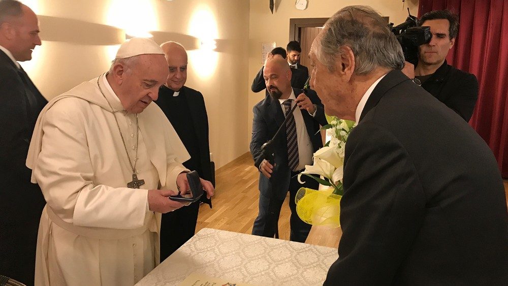È un venerdì scolpito nella misericordia, un pomeriggio di emozioni scandito dall’abbraccio di Papa Francesco a persone che, giorno dopo giorno, smarriscono pezzi di memoria e di vita. In questo giorno speciale, proteso tra la via crucis della malattia e la speranza della Pasqua, le luci più forti sono quelle che accompagnano il gioioso stupore dei residenti del Villaggio Emanuele. Per gli abitanti di questo complesso residenziale, che convivono con la patologia neurodegenerativa dell’Alzheimer che erode le menti e i ricordi, l’incontro con Francesco è stato rigenerante. Per gli ospiti del Villaggio, la visita del Santo Padre è stata anche una straordinaria sorpresa: Francesco è una breccia nella memoria, il suo è un viso familiare da accogliere con un sorriso cristallino come quello di un bambino.