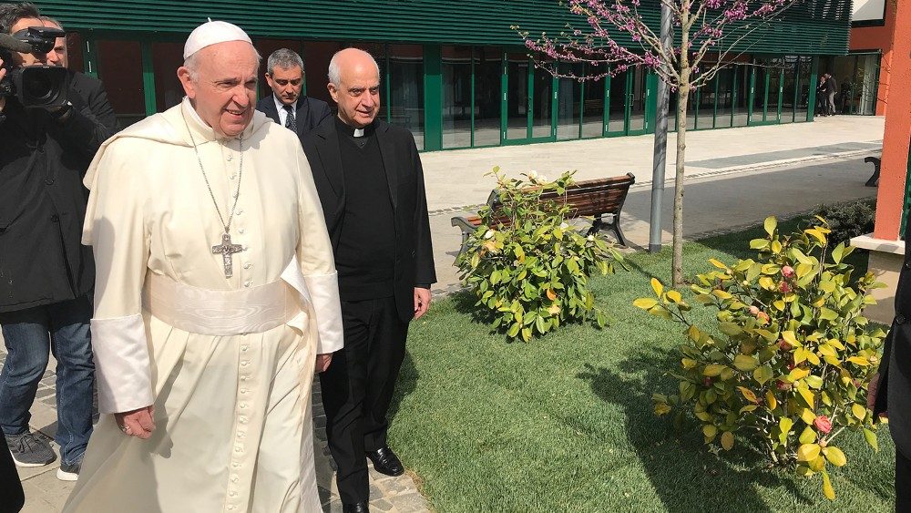 Al suo arrivo, il Papa è sceso dalla macchina nel cortile del Villaggio. Gli ospiti della struttura sono stati avvicinati da Francesco per un saluto e hanno ricevuto qualche parola di conforto, una vera gioia per tutti. Il Papa quindi insieme al presidente onorario della Fondazione Roma, prof. Emmanuele Emanuele, e all’attuale presidente in carica, Franco Parasassi, la visitato le varie aree della struttura a disposizione dei residenti. Alcuni ospiti, che riposavano nelle loro stanze, si sono intrattenuti scambiando alcune battute con Francesco. Altri, dediti allo svolgimento di attività ricreative, hanno illustrato al Papa i loro impegni quotidiani. Al termine della visita, il Santo Padre ha lasciato in dono una pergamena con un pensiero scritto a mano, insieme ad una bella tela raffigurante la Natività.