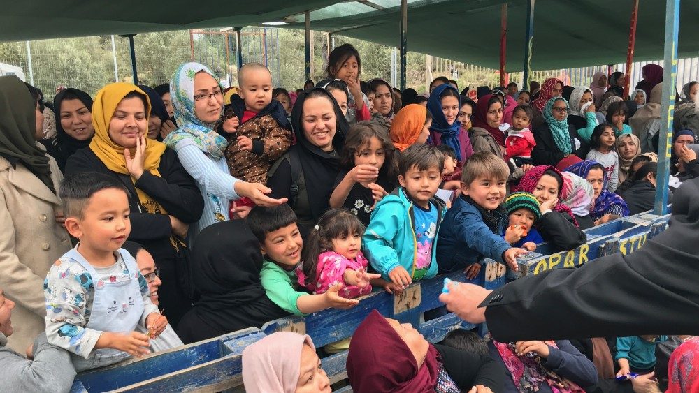 “Non me lo ricordo”. Sheela, profuga dell’Afghanistan, 13 anni, risponde così a chi le chiede da quale parte del Paese asiatico provenga. La incontriamo a Lesvos nel centro ricreativo Team Humanity, non lontano dall’hot-spot di Moria, appena fuori Mytilene, la località principale dell’isola greca. Si fanno attività ludiche, c’è un cinema, si tengono corsi di yoga: ci sono tra i 500 e gli 800 bambini, tutto grazie a donazioni private, “non da fondi dell’Unione europea o governativi” tiene a precisare il responsabile, Salam Aldeen, di madre danese e padre iracheno, che dal 2016 ha scelto non senza difficoltà di salvare vite in mare e poi dedicarsi ai più piccoli. Il centro è stato visitato ieri dal cardinale Konrad Krajewski, l’Elemosiniere apostolico che è venuto a Lesbo per portare la solidarietà del Papa, accompagnato da mons. Jean-Claude Hollerich, arcivescovo di Lussemburgo e presidente della Comece, la Commissione episcopale europea, e da mons. Sevastianos Rossolatos, arcivescovo di Atene.