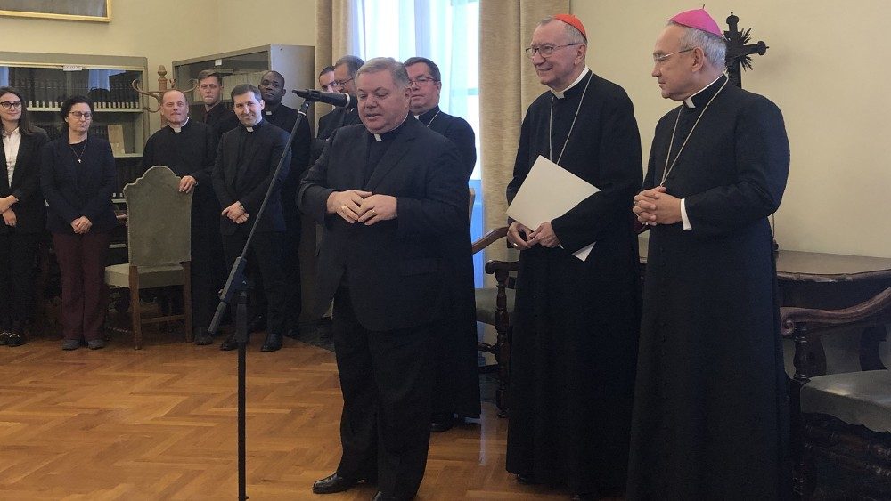 Annunciando la notizia al personale della Segreteria di Stato, il cardinale Pietro Parolin ha presentato nell'occasione anche monsignor Luciano Russo, arcivescovo titolare di Monteverde, nominato dal Papa nel settembre scorso nuovo segretario per le Rappresentanze Pontificie.