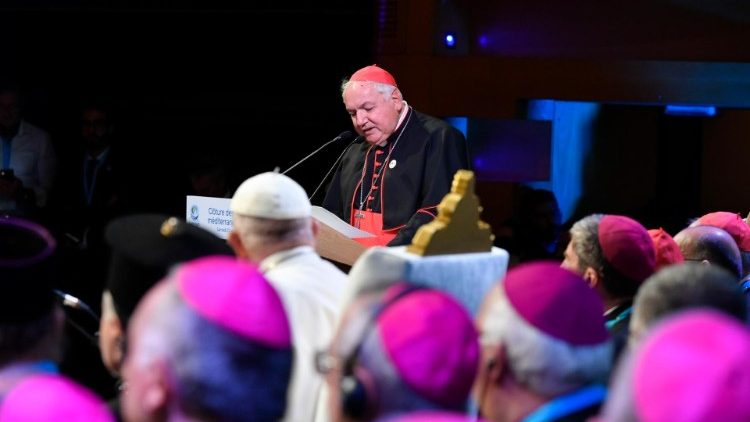 Discorso lungo, corposo, intervallato da citazioni di Paolo VI, La Pira, Pascal, don Tonino Bello. Gli occhi sono sui fogli, ma lo sguardo è sul mare, quello che si estende maestoso fuori dal Palais, situato sul promontorio del Pharo che domina il Porto Vecchio. Un mare, il Mediterraneo, il Mare Nostrum, crocevia tra Nord e Sud, tra Est e Ovest, che “concentra le sfide del mondo intero, come testimoniano le sue ‘cinque rive’”: Nord Africa, vicino Oriente, Mar Nero-Egeo, Balcani ed Europa latina.