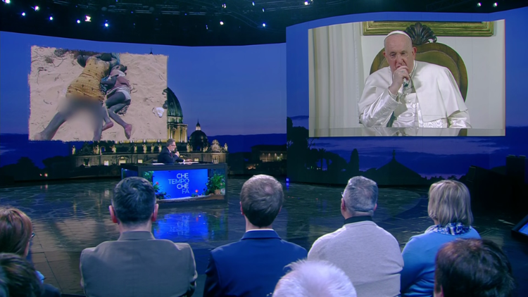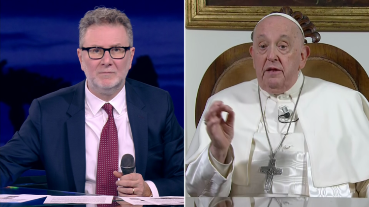 «La guerra – ha detto il Pontefice nell’intervista con Fabio Fazio - è incominciata all’inizio del racconto biblico della Creazione. Caino e Abele. È incominciata l’inimicizia, il crimine di guerra… Poi, nella storia, sempre ci sono state le guerre. Ma la guerra è una opzione egoistica, che ha questo gesto: prendere per me. Invece la pace ha il gesto contrario: dare e dare la mano. È vero che è rischioso fare la pace, ma è più rischiosa la guerra, più rischiosa. Vediamo le due guerre che sono vicine adesso. Ma pensa che, da quando è finita la Seconda Guerra Mondiale ad adesso – l’ho detto – non sono finite le guerre. Adesso, due guerre che, siccome sono vicine a noi, le sentiamo di più: quelle di Ucraina-Russia, e quella Palestina-Israele. Come mai non si può fare la pace. Dietro alle guerre – diciamolo con un po’ di vergogna, ma diciamolo – c’è il commercio delle armi. Mi diceva un economista che, in questo momento, gli investimenti che danno più interessi, più soldi, sono le fabbriche delle armi. Investire per uccidere. Questa è una realtà... questa è una realtà».