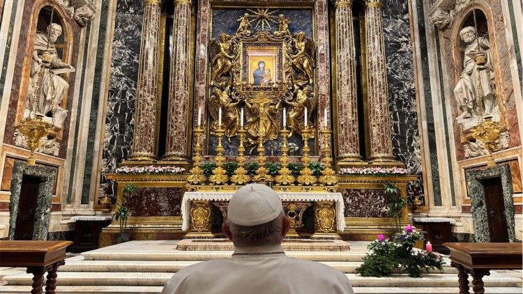 Il Papa in preghiera a Santa Maria Maggiore per il viaggio ad Ajaccio