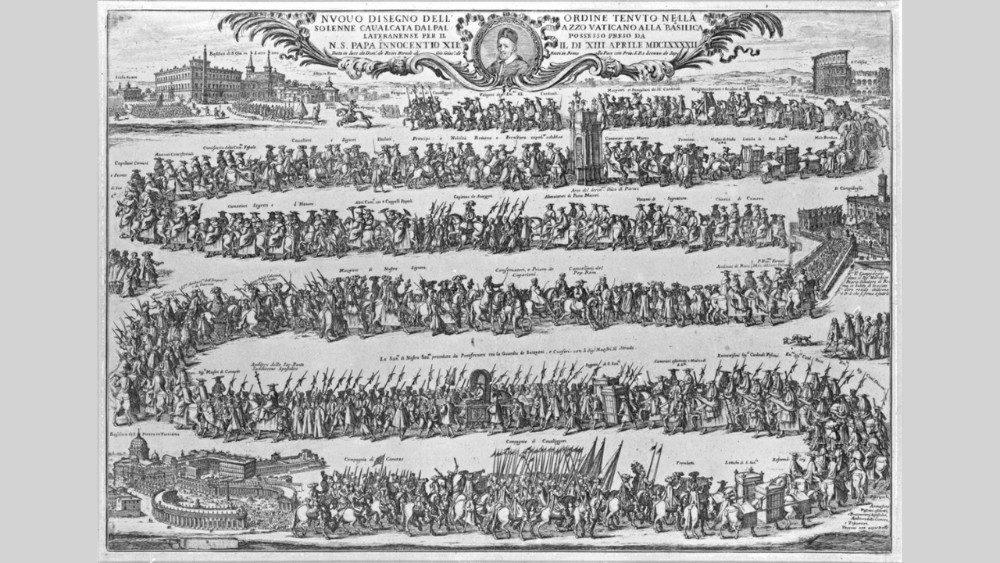 Il corteo sfilava lentamente, solenne, sfarzoso. Centinaia di persone vestite con i loro abiti migliori, stoffe preziose, frange e piume colorate, chi a piedi, chi a cavallo. Sembrava non finire mai. Un serpente sinuoso, il cui ordine di precedenza era regolato con precisione millimetrica. Una gerarchia meticolosa, ossessiva, regolata dai diversi ordinamenti pontifici che si sono succeduti nei secoli. Il papa neoletto era stato appena incoronato a San Pietro e ora si dirigeva verso la basilica di San Giovanni in Laterano per la sua intronizzazione. Era il suo primo atto pubblico ufficiale. Questa processione mostrava al popolo assiepato lungo le strade strette o le piazze il volto del nuovo Pontefice ma anche quello dei suoi collaboratori e sodali e pertanto rivestiva un significato importante anche come affermazione della sua autorità. "La cavalcata papale" - questo il suo nome - era una cerimonia dalle origini molto antiche e ricolma di complessi significati allegorici, liturgici, religiosi e politici.