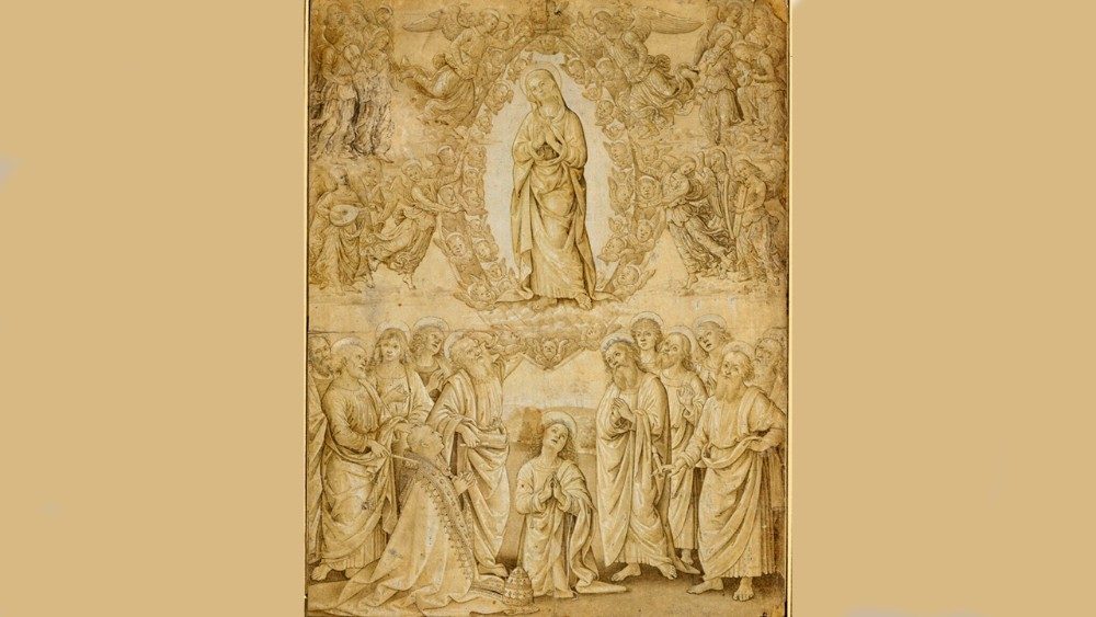 Contro la parete di quest’ambiente di servizio incombe la grandezza drammatica degli affreschi di Michelangelo, ma nascosto si conserva ancora quello che doveva in origine concludere il complesso apparato iconografico dell’intera Cappella. È l’affresco del Perugino, protetto da una intercapedine dietro il Giudizio, ma tuttavia noto da un disegno dei primi anni del XVI secolo, conservato all’Albertina Museum di Vienna.  Ai piedi dell’Assunta, tra schiere di angeli e santi c’è, unico vivente, Papa Sisto IV della Rovere inginocchiato. Le mani giunte in preghiera, il volto rivolto verso la figura della Vergine; la tiara a terra e il capo scoperto in segno di umiltà e rispetto; la chiave petrina poggiata sulla sua spalla destra, simbolo di quella che è la missione, ma anche il peso - quasi una croce - che deve portare il Pontefice. Le parole dell’Evangelista Giovanni riecheggiano chiare e intellegibili: “…quando eri più giovane ti vestivi da solo e andavi dove volevi; ma quando sarai vecchio tenderai le tue mani, e un altro ti vestirà e ti porterà dove tu non vuoi. Questo disse per indicare con quale morte egli avrebbe glorificato Dio".