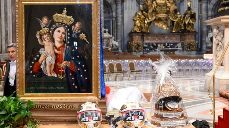 Prima di lasciare la Basilica, il Papa ha benedetto una copia del immagine della Madonna della Speranza, che si trova nel santuario della città di Marigliano, nella diocesi di Nola. L’icona è stata portata da un gruppo di fedeli e dal parroco del santuario, che stanno effettuando una peregrinatio nell’Anno Santo, poiché si tratta di un santuario giubilare.