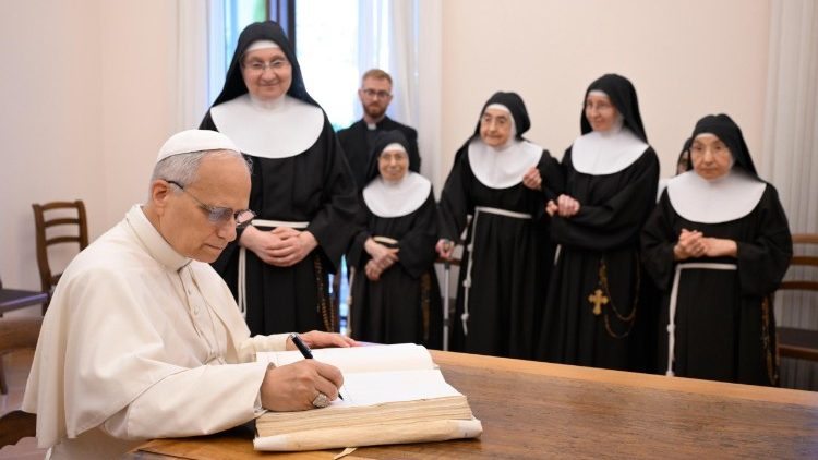 Leone XIV, dopo aver celebrato la Messa nella caserma dei Carabinieri di Castel Gandolfo, ha fatto visita alle religiose del Monastero di Albano, pregando con loro: la vostra è una "testimonianza preziosa"