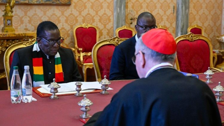 Papa Leone XIV ha ricevuto in udienza in Vaticano questa mattina, 30 agosto, il presidente della Repubblica dello Zimbabwe, Emmerson Dambudzo Mnangagwa. Successivamente il capo di Stato si è intrattenuto con il cardinale Pietro Parolin, segretario di Stato, e monsignor Paul Richard Gallagher, Segretario per i Rapporti con gli Stati e le Organizzazioni Internazionali.