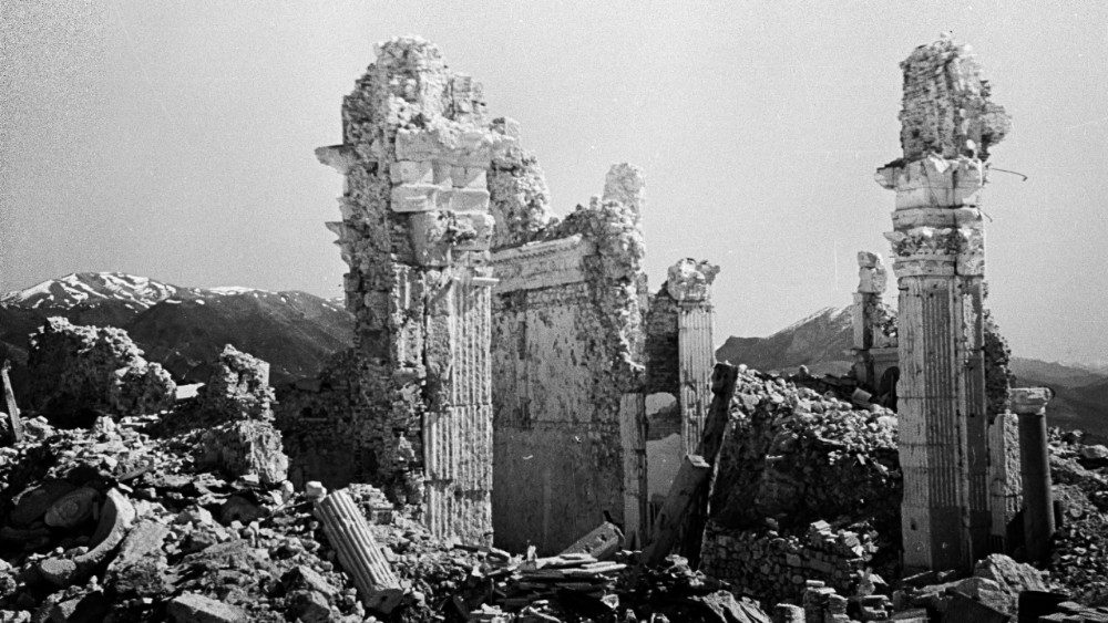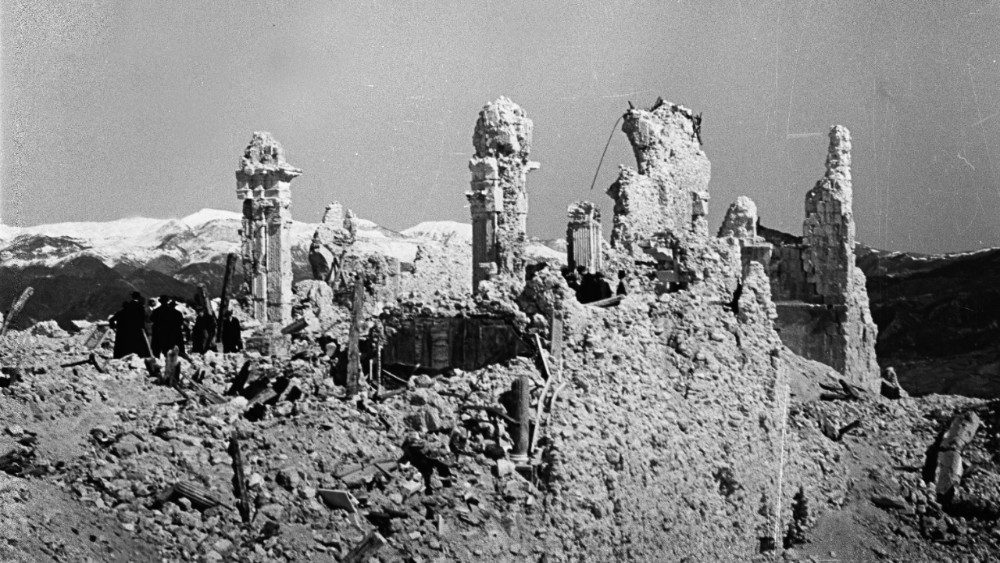 Il 15 febbraio del 1944, la distruzione dell’Abbazia di Montecassino da parte degli angloamericani. L’ultimo Papa a visitarla è stato Benedetto XVI nel 2009 quando pregò così per i caduti di tutte le guerre: "Tutti siamo chiamati ad essere costruttori di pace per il domani dei nostri figli"