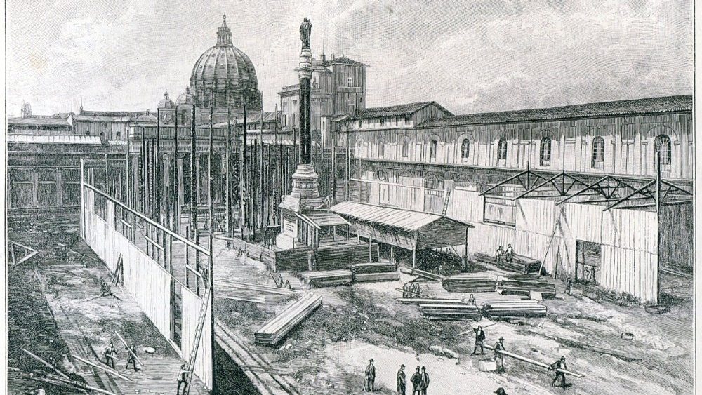 - Roma 1870. La Santa Sede organizza una mostra a Roma di opere d’arte eseguite per il culto cattolico. Virginio Vespignani progettò le strutture espositive nel chiostro della basilica di Santa Maria degli Angeli.