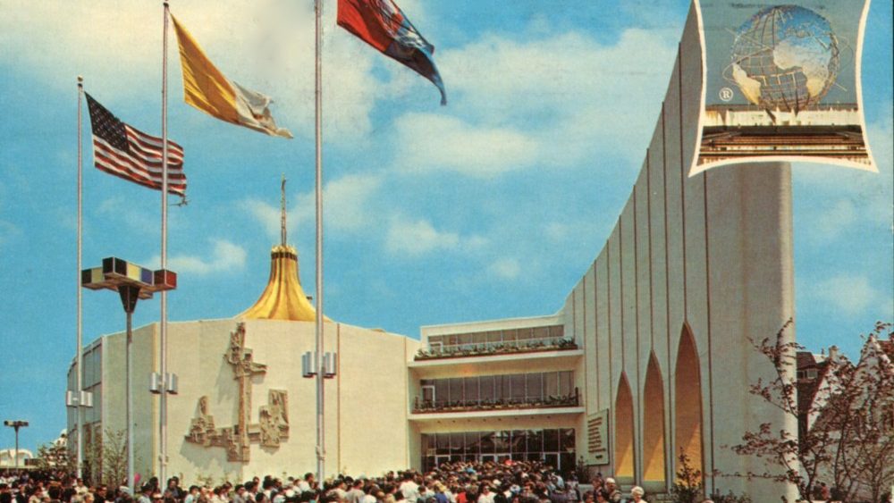 - New York 1964-5. Fiera Mondiale. La Santa Sede, regnante Paolo VI Montini è presente con la Pietà di Michelangelo, assicurata per 26 milioni di dollari (cifra vertiginosa per l’epoca), e visitata complessivamente da 17 milioni di persone. L’allestimento dark blue è affidato a Jo Mielziner, uno dei più celebri scenografi teatrali di Broadway. Il padiglione volle nell’occasione tracciare una storia della cristianità da Cristo al Concilio vaticano II; fu allora presentata anche la ricostruzione della tomba di san Pietro sotto la basilica Vaticana