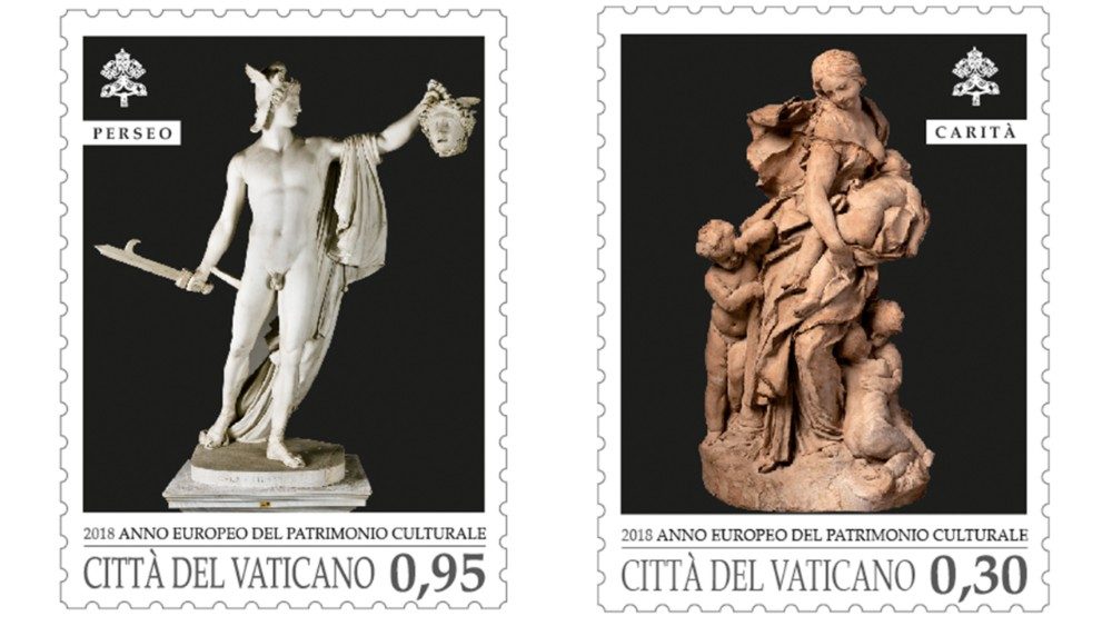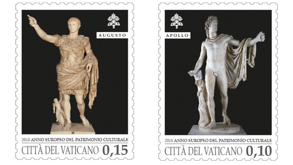 Un’altra delle emissioni è dedicata all’Anno Europeo del Patrimonio Culturale. Nei quattro francobolli della serie vi sono raffigurate altrettante statue dei Musei Vaticani: L’ “Apollo del Belvedere” del periodo post-ellenistico, la statua romana l’ “Augusto di Prima Porta”, “La Carità” di Gian Lorenzo Bernini e il “Perseo trionfante” di Antonio Canova.