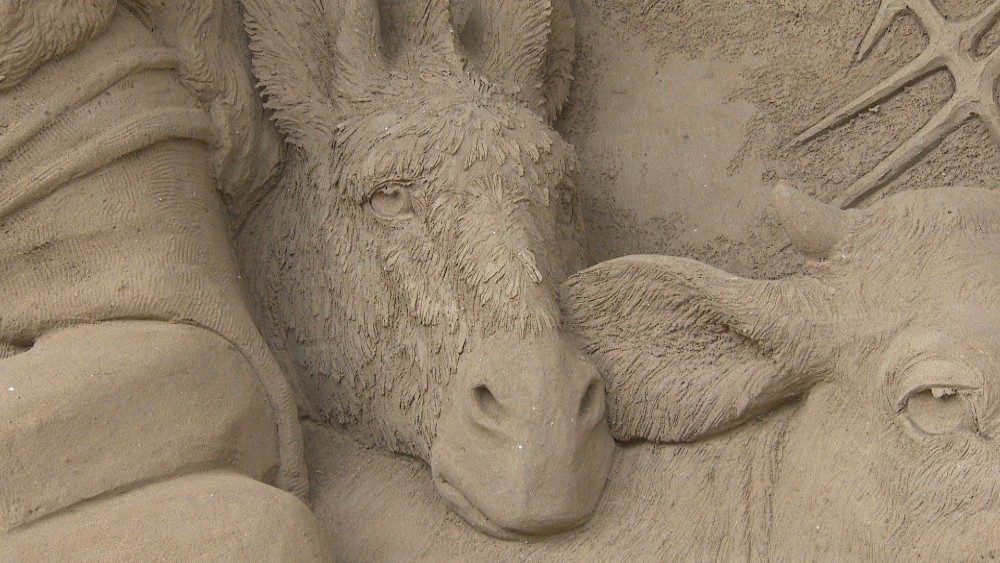 Gli scultori del team “Sultans of sand” sono ormai agli ultimi ritocchi della loro Natività di sabbia, la Sand Nativity che il comune di Jesolo e il patriarcato di Venezia donano al Papa e alla Chiesa universale. L’olandese Susanne Ruseler, che ha lavorato sui pastori e gli animali a sinistra, il russo Ilya Filimontsev che ha scolpito il nucleo centrale della Sacra Famiglia e l’Angelo, e il ceco Radovan Zivny, che ha cesellato i volti e le vesti dei Re Magi a destra della scena, stanno completando gli scalini che saranno pronti per l’inaugurazione prevista per domani, 7 dicembre, alle 16.30.
