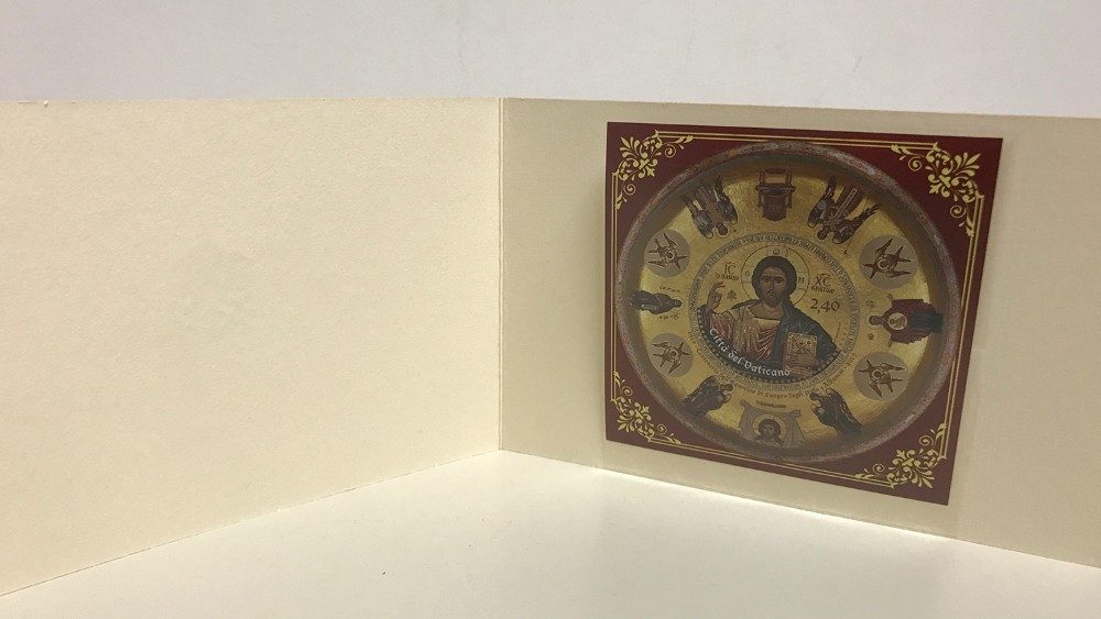 Un foglietto quadrato di 9,5 centimetri per lato, con un francobollo circolare all’interno di 3,8 centimetri, che riproduce il mosaico del Cristo Pantocratore della Cattedrale di San Nicola di Mira a Lungro, cuore della comunità cattolica italo-albanese di rito orientale. Con questa emissione, l’Ufficio filatelico e numismatico della Città del Vaticano celebra il centenario dell’istituzione dell’Eparchia di Lungro, decretata da Papa Benedetto XV con la Costituzione apostolica “Catholici fideles”.