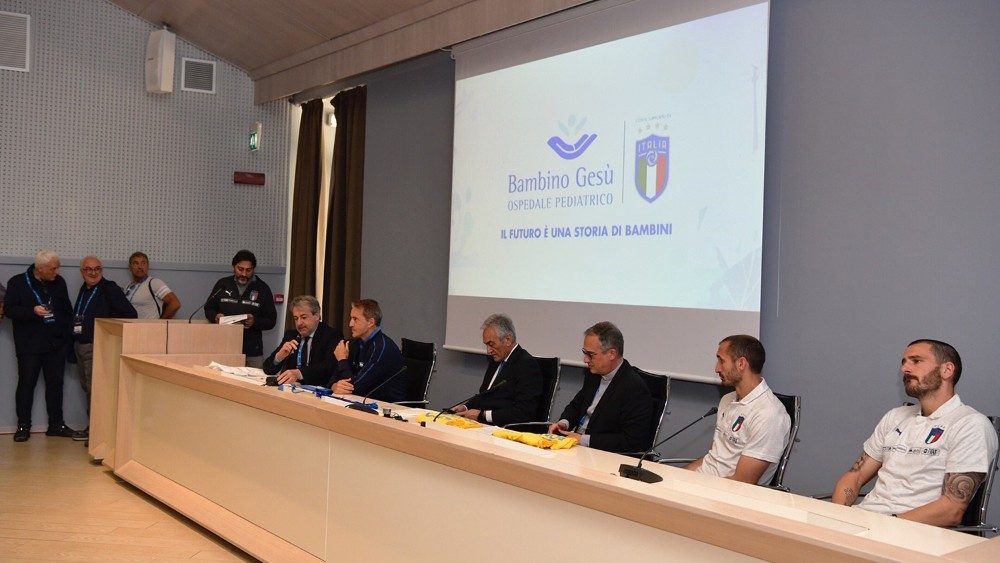 “Siamo onorati di questa partnership definita in accordo con l’OPBG e la Santa Sede”, ha affermato il Presidente della FIGC, Gabriele Gravina, intervenendo all’appuntamento assieme al Direttore Generale dell’OPBG, Ruggero Parrotto; il CT della Nazionale, Roberto Mancini, accompagnato dai calciatori Giorgio Chiellini e Leonardo Bonucci. Nel panel anche mons. Dario Edoardo Viganò, Assessore del Dicastero per la Comunicazione e Coordinatore degli Eventi per il 150 anni dell’OPBG.