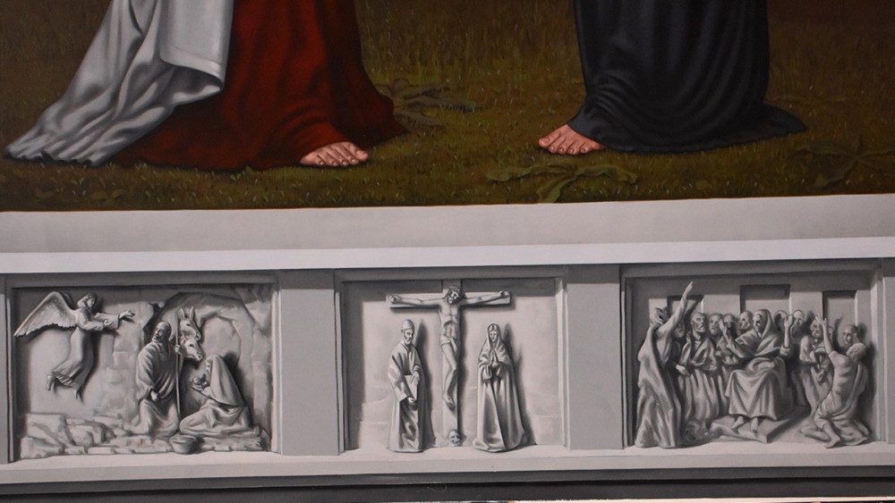 E’ guardando a loro che Rodolfo Papa ha realizzato la tela, di dimensioni 260x200, ma non solo: “ ho pensato anche alle parole di papa Francesco sul ruolo delle donne nella Chiesa. Vorrei che questo mio quadro – ha dichiarato l’artista - fosse strumento di meditazione e di riflessione, e in qualche modo servisse allo slancio missionario della Chiesa, nutrendone sempre l'entusiasmo, secondo quanto ci chiede il Pontefice». La tela è stata donata dalla Associazione Culturale Accademia Urbana delle Arti.