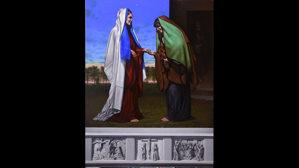 Sarà collocata nel corridoio centrale del Pontificio Collegio Missionario Internazionale San Paolo, la Visitazione appena dipinta Rodolfo Papa. La tela, i lati della porta della grande Cappella, sarà speculare ad un’altra opera realizzata dal pittore e dedicata ai Santi Pietro e Paolo, inaugurata lo scorso anno dal segretario della Congregazione per l’Evangelizzazione dei Popoli monsignor Protase Rugambwai.