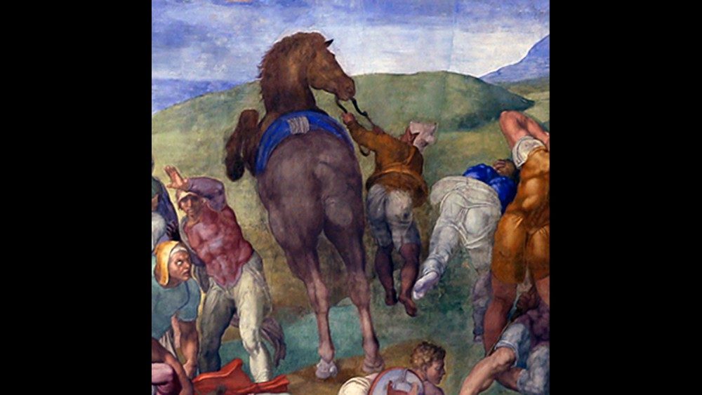 La presenza di Dio e la sua desolante assenza rappresentate in pochi metri quadri di superficie dipinta ad affresco. Le scene della Conversione di Saulo e della Crocefissione di San Pietro eseguite tra il 1542 ed il 1550 sulle due pareti contrapposte della Cappella Paolina, cuore dei Palazzi Apostolici, sono l’ultima fatica pittorica di Michelangelo Buonarroti.