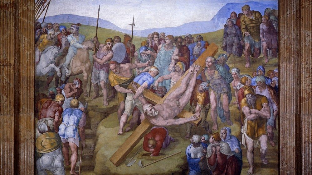 Sulla croce sta accadendo quanto Gesù aveva predetto al suo Apostolo invitandolo alla sequela: “Quando sarai vecchio un altro ti porterà dove tu non vuoi”. “Se in questa Cappella si viene a meditare”, ha detto Benedetto XVI inaugurandone i restauri il 4 luglio 2009 - “non si può sfuggire alla radicalità della domanda posta dalla croce: la croce di Cristo, Capo della Chiesa, e la croce di Pietro, suo Vicario sulla terra”. “Per chi viene a pregare in questa Cappella, e prima di tutto per il Papa”, ha aggiunto, “Pietro e Paolo diventano maestri di fede. Con la loro testimonianza invitano ad andare in profondità, a meditare in silenzio il mistero della Croce, che accompagna la Chiesa fino alla fine dei tempi, e ad accogliere la luce della fede, grazie alla quale la Comunità apostolica può estendere fino ai confini della terra l’azione missionaria ed evangelizzatrice che le ha affidato Cristo risorto”.