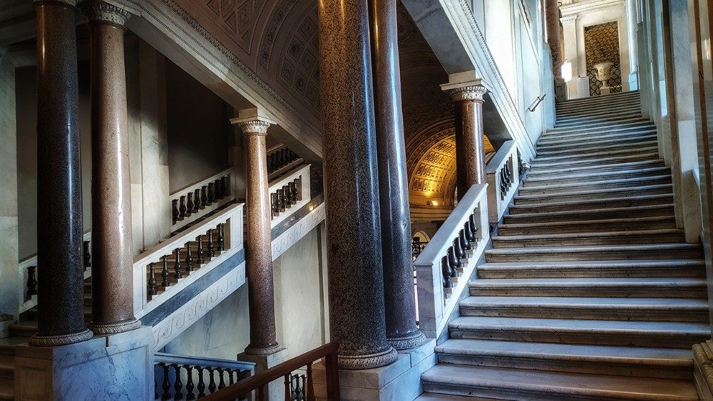 Johann Joachim Winckelmann è incantato dalla Città Eterna dove, sotto la protezione del cardinale Alessandro Albani, soggiorna tredici anni, diviene punto di riferimento e guida per chi compie il Grand Tour e nel 1763 è nominato Commissario delle Antichità di Roma da Clemente XIII, da lui ricordato come “il Papa che mi vuole bene”. La presenza in Vaticano dello studioso tedesco, padre dell’archeologia e della moderna storia dell’arte, imprime un segno indelebile: “il tesoro delle antichità” non viene più esclusivamente concepito nel suo valore estetico, ma come un documento per comprendere e ricostruire la storia. Scriverà infatti in proposito “mi sono accorto che si parla delle antichità un po’ alla cieca basandosi sui libri, senza aver visto di persona”. L’amarezza per i tanti saccheggi compiuti a Roma nei secoli, acuisce in lui la sensibilità per la tutela del patrimonio artistico. Una caratteristica questa che trasmette a Giovanni Battista Visconti, letterato ed antiquario che gli succederà dal 1768 nel ruolo di Commissario.