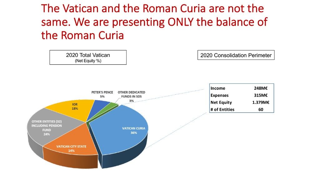 Quando abbiamo presentato il bilancio dell’anno scorso, lo abbiamo inserito in questo contesto per avere una visione più generale. Se mettessimo insieme tutte le entità, il quadro sarebbe un po’ peggiore: il deficit attuariale del Fondo Pensioni pesa sulla Santa Sede per i prossimi 100 anni, così come il Fondo Sanitario ha il suo “deficit attuariale”. Gli enti della Santa Sede non hanno scopo di lucro. Molti tendono ad essere in perdita perché forniscono servizi che non sono completamente finanziati. C'è un lavoro importante da fare per migliorare la sostenibilità.