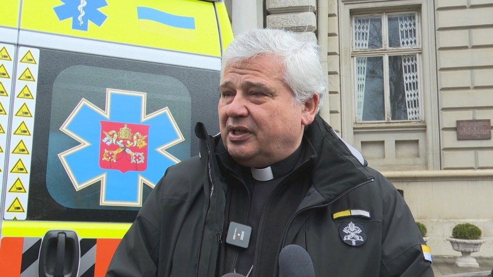 Ho il privilegio di consegnare al nome del Santo Padre il dono particolare dell’ambulanza che è un simbolo, perché l'ambulanza serve per salvare la vita. Il Pontefice è sempre colui che mette i ponti, che porta la pace, quindi questa l'ambulanza è proprio per la gente che soffre ma rappresenta anche l’abbraccio del Santo Padre. E’ un modo per dire: “sono vicino a voi, soffro con voi e chiedo e supplico proprio la pace per questo Paese che è in grande difficoltà”. Ho consegnato già al prefetto di Leopoli questa l'ambulanza e mi ha ringraziato, ha ringraziato il Santo Padre e ha detto che l'ambulanza è destinata all'ospedale pediatrico proprio per salvare i bambini quelli che arrivano dalla guerra.