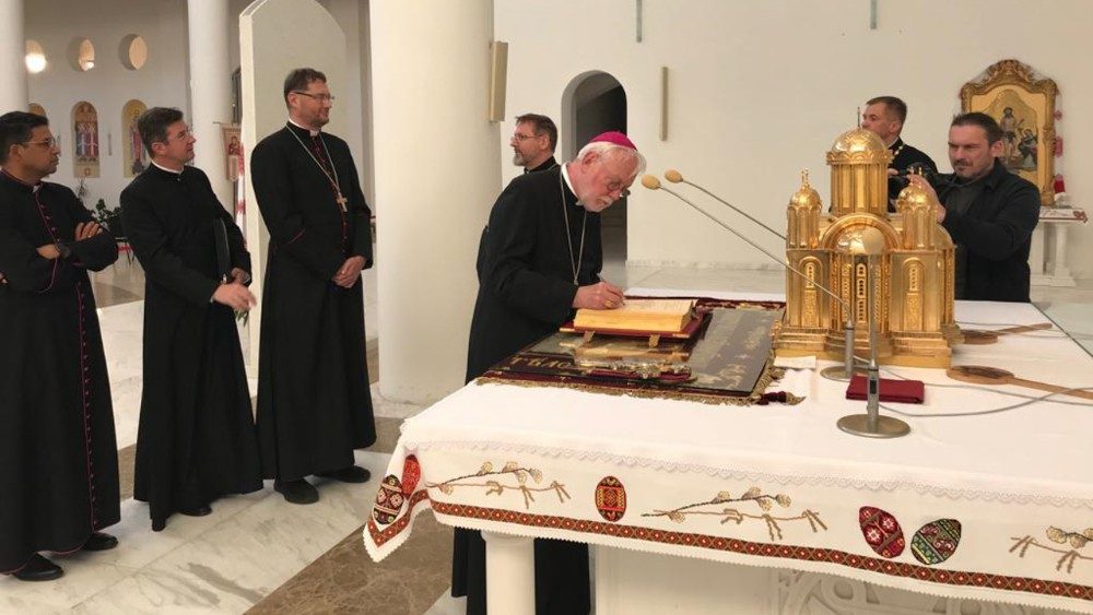 Nella giornata di ieri monsignor Gallagher ha incontrato Sua Beatitudine Sviatoslav Shevchuk, arcivescovo maggiore di Kiev, della chiesa greco-cattolica ucraina presso la cattedrale della Resurrezione. Qui ha fatto seguito un breve colloquio riservato. L’arcivescovo Shevchuk ha rievocato i giorni più bui del conflitto e “l’eroica difesa” della città da parte dei suoi abitanti.