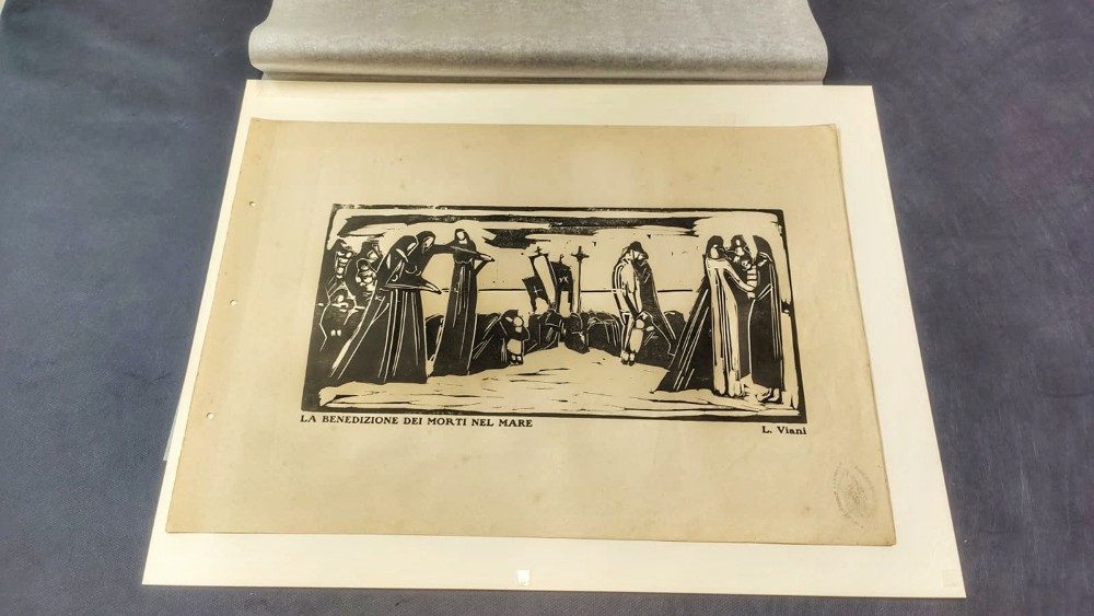 Citazioni evangeliche o di figure legate alla pietà popolare e alla pratica devozionale della Via Crucis sono presenti in un’altra serie di opere grafiche di strettissima attualità. Si tratta di xilografie, ovvero immagini da matrice lignea, eseguite tra il 1912 ed il 1913, pubblicate nel 1918 da Lorenzo Viani. Il tema è quello della benedizione dei morti in mare, particolarmente sentito a Viareggio, città di origine del pittore e poeta italiano che rappresenta, come moderne Pietà, il pianto delle donne sui figli e mariti dispersi in mare. Madri velate solcate dal dolore, reduci segnati dalla fatica estenuante dei pescatori in un viaggio falcidiato dalla morte, resa in tutta la sua crudezza nei volti dei cadaveri dei naufraghi. Evidenti gli spunti tratti dall’arte africana, ma anche dall’arte medievale italiana dei Pisano.