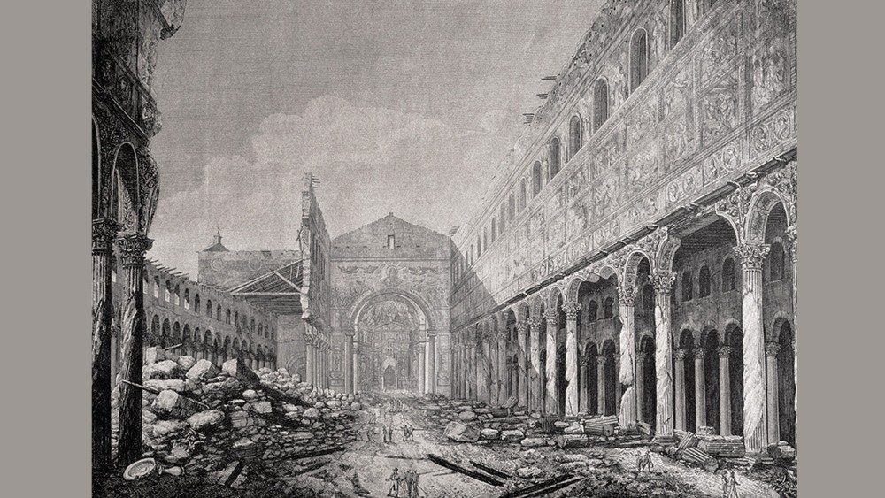 Il tetto malmesso e le vecchie grondaie avevano gocciolato per tutta la primavera durante le piogge e adesso che era arrivato il caldo bisognava metterci mano per evitare il ripetersi in autunno dello stesso guaio. Così, in quell’estate del 1823, i monaci della Basilica di San Paolo fuori le Mura chiamano degli operai per le riparazioni. Il 15 luglio è un martedì e a fine lavoro i due stagnari, come si dice a Roma - in pratica dei saldatori esperti di idraulica - che erano sul tetto rimettono a posto gli attrezzi e se ne vanno a casa, dopo aver spento fra l’altro su una padella i mozziconi di brace usati per lavorare. Ma si sbagliano, qualcosa di quei mozziconi ancora brilla e la svista avrà conseguenze terribili. Lo racconta 200 anni dopo, in un documentato articolo, monsignor Michele Pennisi, riferendo di un episodio che farà scalpore nel mondo, non solo cattolico.