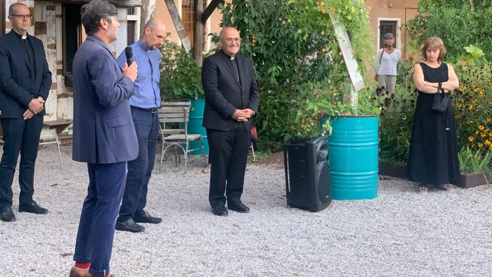 Occasione l’evento “Amicizia Sociale: Incontrarsi nel Giardino”, promosso dal Dicastero per la Cultura e l’Educazione, in collaborazione con la Fondazione Ente dello Spettacolo e della Benedicti Claustra Onlus. Nel primo momento d’incontro, dopo la visita guidata al Padiglione dal curatore Roberto Cremascoli anche all’installazione “O Encontro” dell’architetto portoghese Álvaro Siza, nell’orto-giardino disegnato dal collettivo italiano Studio Albori, il saluto dell’abate benedettino di Praglia, Stefano Visintin, dello stesso curatore e di monsignor Davide Milani, presidente di Feds.