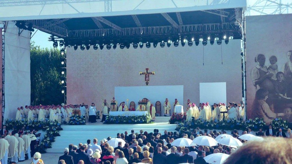 Tutto è immobile nella spianata di Markowa quando il vescovo Krzysztof Chudzio traduce in polacco le parole di Semeraro sul più piccolo tra i nuovi beati, la creatura che Wiktoria portava in grembo “e che veniva alla luce nel travaglio della carneficina della madre.