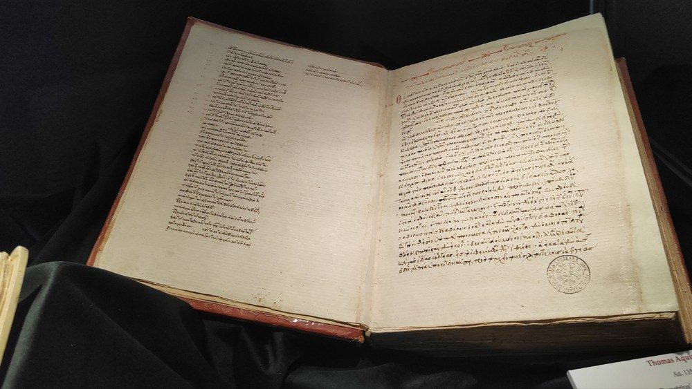 Visitiamo la mostra accompagnati da uno dei curatori, Stefen Metzger, del Dipartimento Manoscritti Bav: l’esposizione documenta la diffusione dei testi di Bonaventura e Tommaso dalle origini ai nostri giorni, passando per la produzione libraria nell’università medievale o per le traduzioni delle opere eseguite lungo i secoli in greco, arabo, armeno, cinese, ebraico, tedesco e olandese.