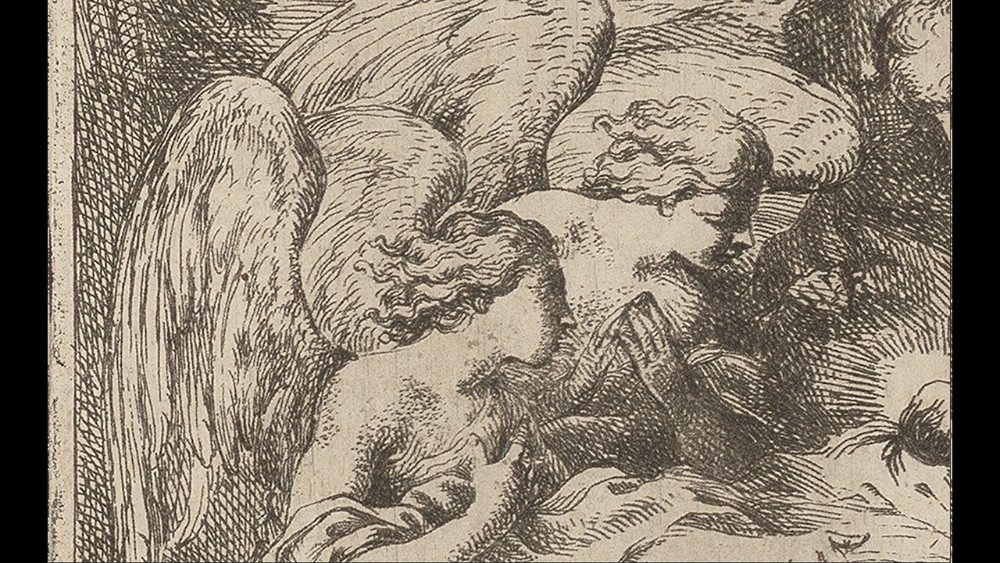 Tra queste si distingue una Natività con angeli adoranti, acquaforte che risale al 1650 circa, dove Gesù bambino è al centro della raffigurazione, intima e raccolta, con Maria, Giuseppe e due angeli in adorazione. In alto gli angeli cantano il Gloria, mentre sullo sfondo le rovine classiche  alludono  al passaggio dal vecchio mondo pagano a quello cristiano.