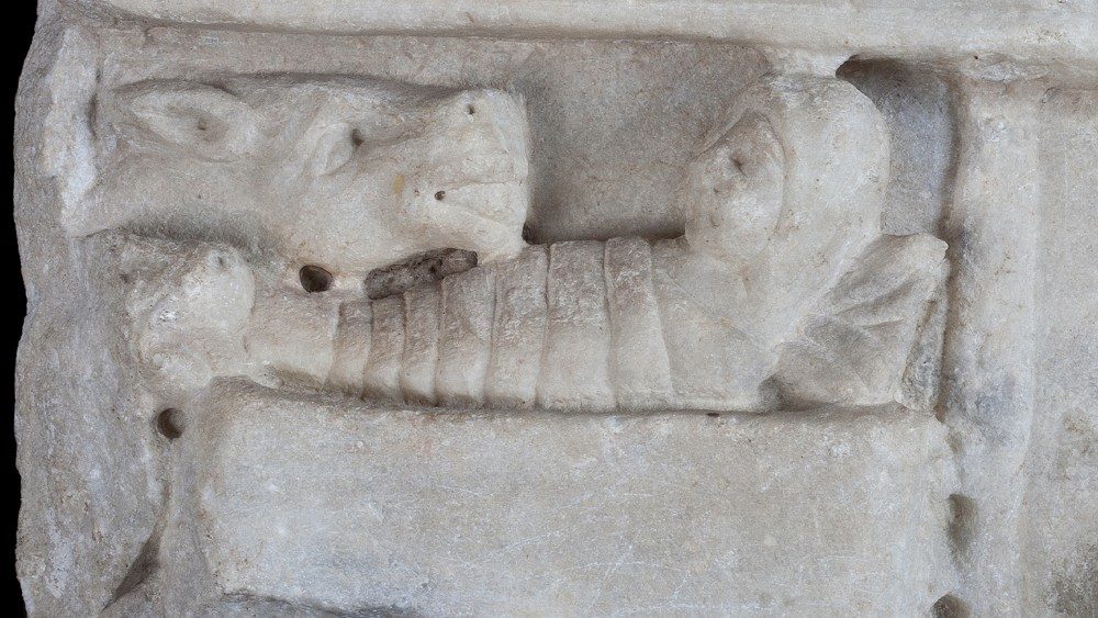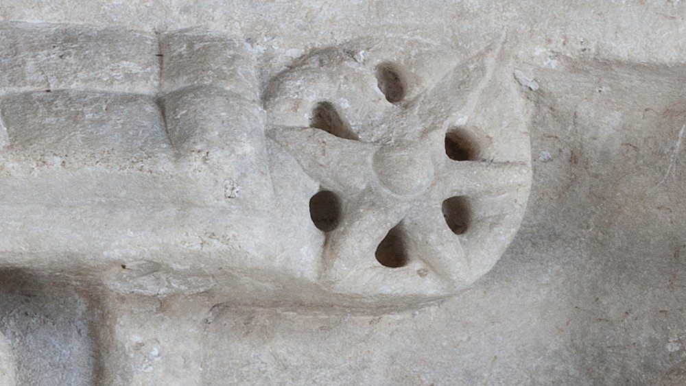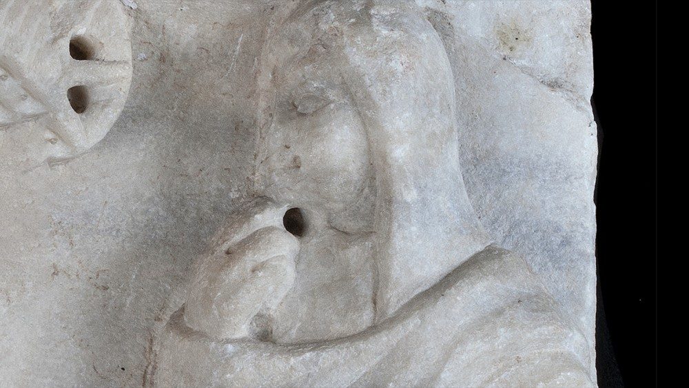 Frammento di attico di sarcofago raffigurante la Natività; marmo bianco; 370 - 400; (particolare) Museo Pio Cristiano. © Musei Vaticani