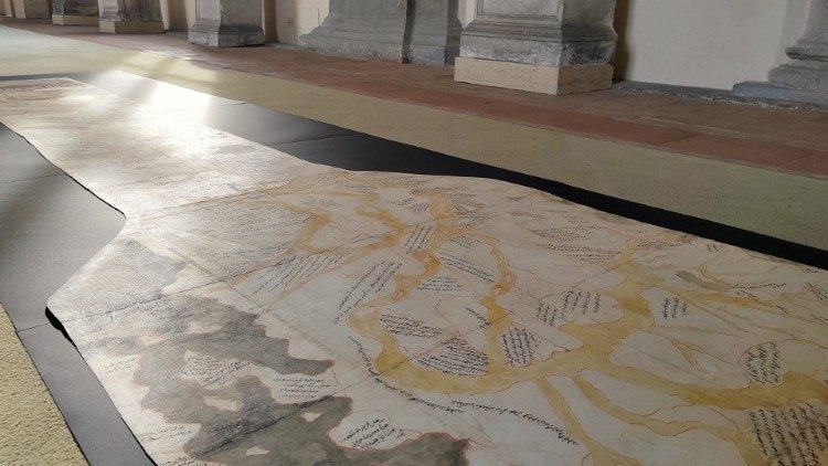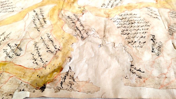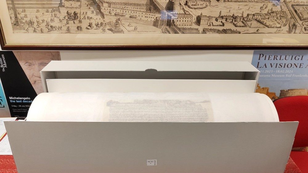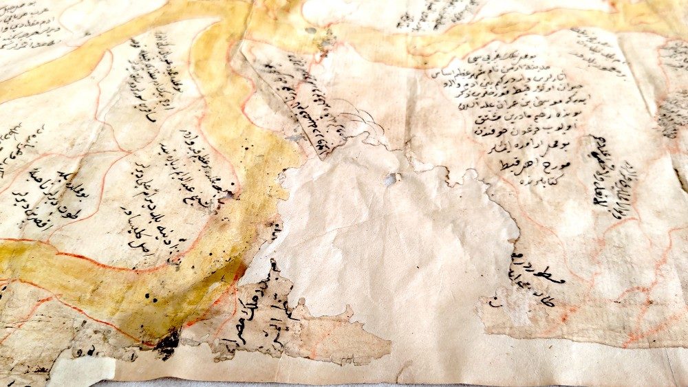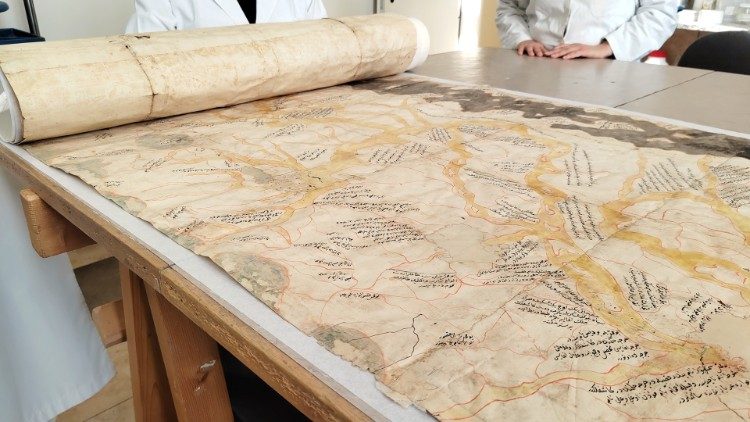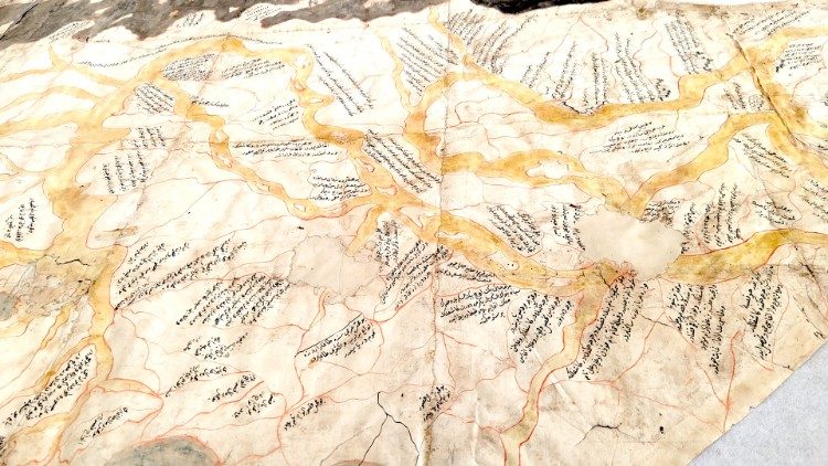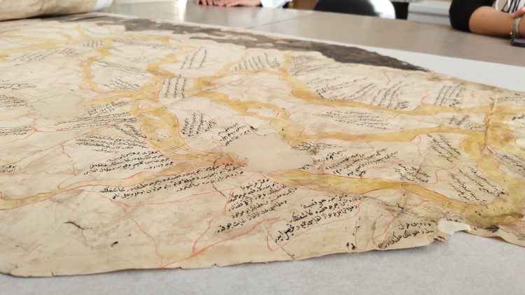 Undici le opere della BAV destinate alla Biennale di Jeddah, la seconda edizione dopo quella che nel 2023 ha attratto oltre 600mila visitatori. Non si tratta solo di libri. Tra tutte spicca un unicum: è la mappa del Nilo lunga 5 metri e 60 centimetri, non ne esistono altre. Esposta in occasione della mostra su Pietro Ruffo allestita in Biblioteca Vaticana nel 2021, esce per la prima volta dalle Mura Leonine. “Ha una storia molto interessante che risale al XVIII secolo”, spiega Delio Vania Proverbio, Scriptor orientalis della BAV.