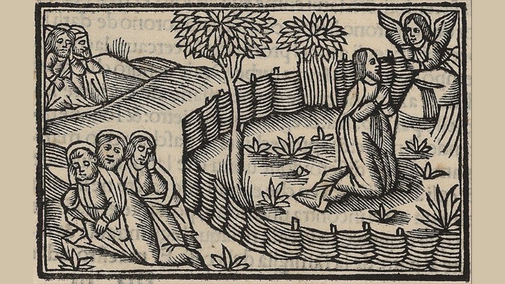 L’illustrazione che vi proponiamo in questa terza settimana di Quaresima ritrae la scena evangelica della preghiera di Gesù nel Getsemani.