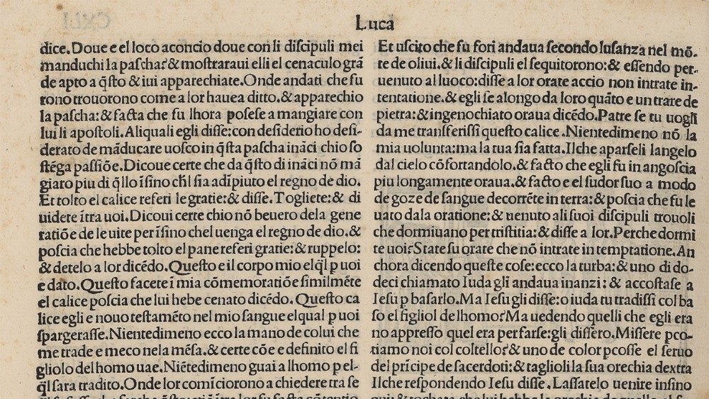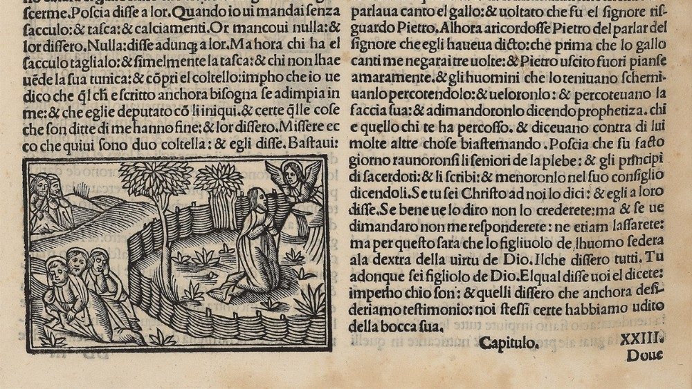 È tratta dalla Biblia Vulgare, presente in diversi esemplari nella Biblioteca Apostolica Vaticana. L’edizione fu tradotta da Niccolò Malerbi e stampata da Giorgio Rusconi a Venezia nel marzo 1517.
