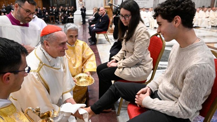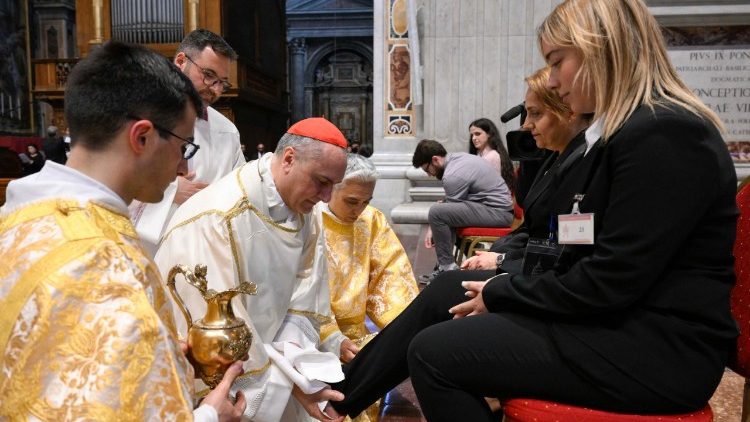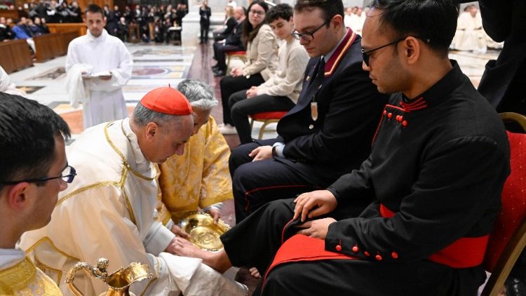 Il mondo troppo spesso “ci tradisce”, “ci consegna”, per un tornaconto “economico e di potere”. A questa logica, – che arma i conflitti del nostro tempo – si contrappone un nuovo “potere”, insito nel “servire” ed incarnato da Gesù, espressione concreta del “dinamismo della prossimità”. È questa l’immagine consegnata dal cardinale Mauro Gambetti, arciprete della Basilica Papale di San Pietro, nell’omelia della Messa in Coena Domini del Giovedì Santo. La celebrazione, presieduta dal porporato questa sera, 17 aprile, presso l’Altare della Cattedra della basilica vaticana, concelebrata, tra gli altri, dal cardinale segretario di Stato della Santa Sede, Pietro Parolin, ha contemplato anche il tradizionale rito della Lavanda dei Piedi.