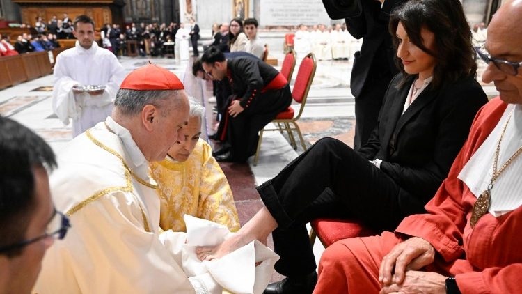 Nel corso della celebrazione, si è compiuto anche il rito della Lavanda dei Piedi. L’arciprete ha chinato il capo dinanzi a persone laiche, uomini e donne che frequentano o lavorano tra le navate della basilica di San Pietro. Volti quotidiani, ognuno con le proprie fragilità, simboli vivi di quel grande cenacolo di umanità evocato dal porporato nell’omelia. Dopo l'orazione finale, una processione guidata dal cardinale Gambetti ha accompagnato il Santissimo Sacramento nella cappella della basilica vaticana preparata per l'adorazione. A fare da cornice sonora, con l'inno Pange lingua le voci della Cappella Giulia, lo storico coro che accompagna le cerimonie celebrate in San Pietro dal Capitolo Vaticano, non presiedute dal Papa. Un’eredità musicale che affonda le radici nel 1513, quando Papa Giulio II riorganizzò questo ensemble che ancora oggi custodisce, nota dopo nota, la bellezza della liturgia.